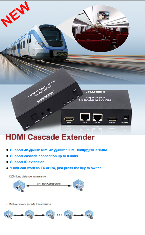 Dieser HDMI/CAT – Transceiver unterstützt eine Auflösung von 4K60Hz und überträgt HDMI über CAT5 6/7-Kabel bis zu 70 Meter, mit Audioextraktion, IR-Steuerung.